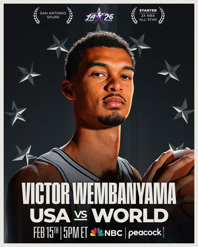 文班亚马成为西部全明星首发,这是他生涯第2次入选全明星,也是连续第2年入选。赛季至今,文班亚马场均24.5分10.9篮板3.0助攻。