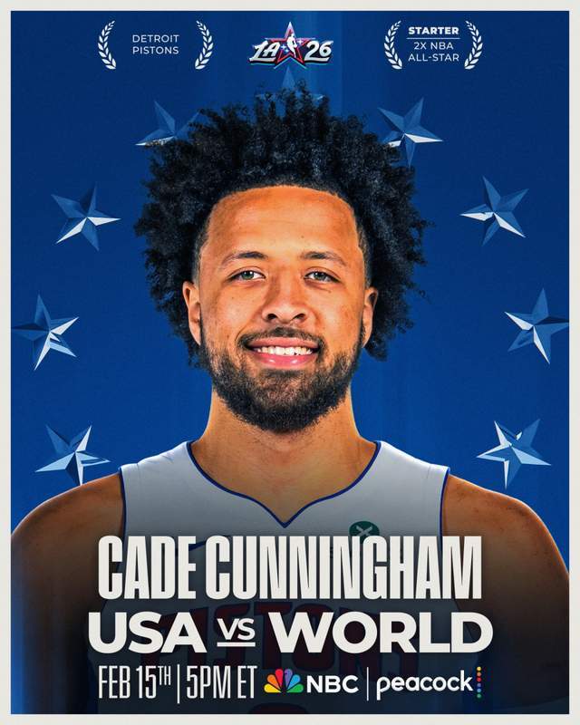 坎宁安成为东部全明星首发,这是他生涯第2次入选全明星,也是连续第2年入选。赛季至今,坎宁安场均25.9分6.0篮板9.6助攻。