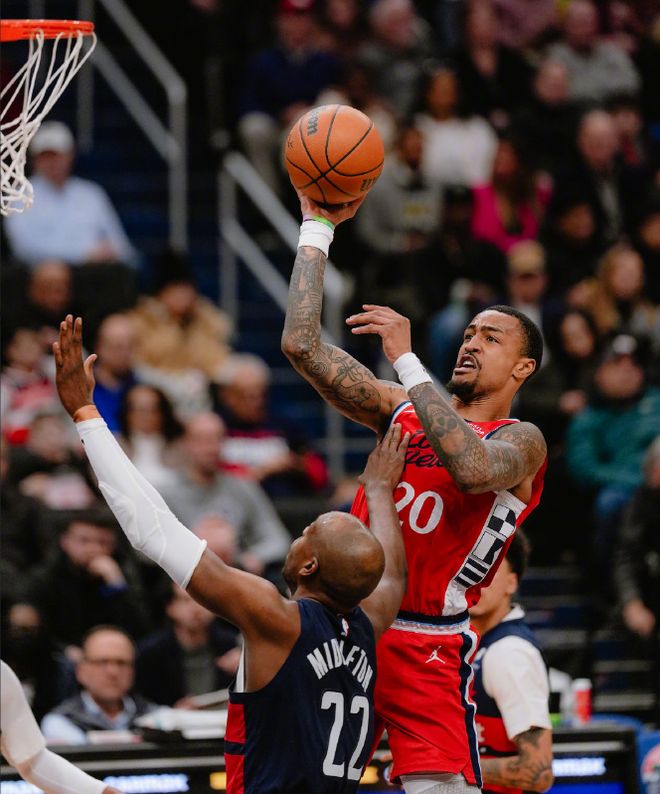 奇才能够在主场和士气正盛的快船激战至最后一刻,24年的榜眼秀萨尔功不可没,用28分、6个篮板、2次助攻、2次抢断和2个封盖填满了数据栏,可惜老将米德尔顿表现不佳,只有10次出手命中3球的效率,拖了球队的后腿,让奇才只能接受主场惜败的结局。