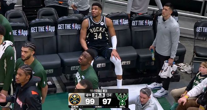 字母哥22+13+7伤退!雄鹿无缘23分逆转残阵掘金 近8战6败