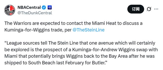 Stein表示,自库明加在1月16日主动提出交易申请后,勇士队“毫无疑问”会继续推进涉及这名球员的各类交易谈判。