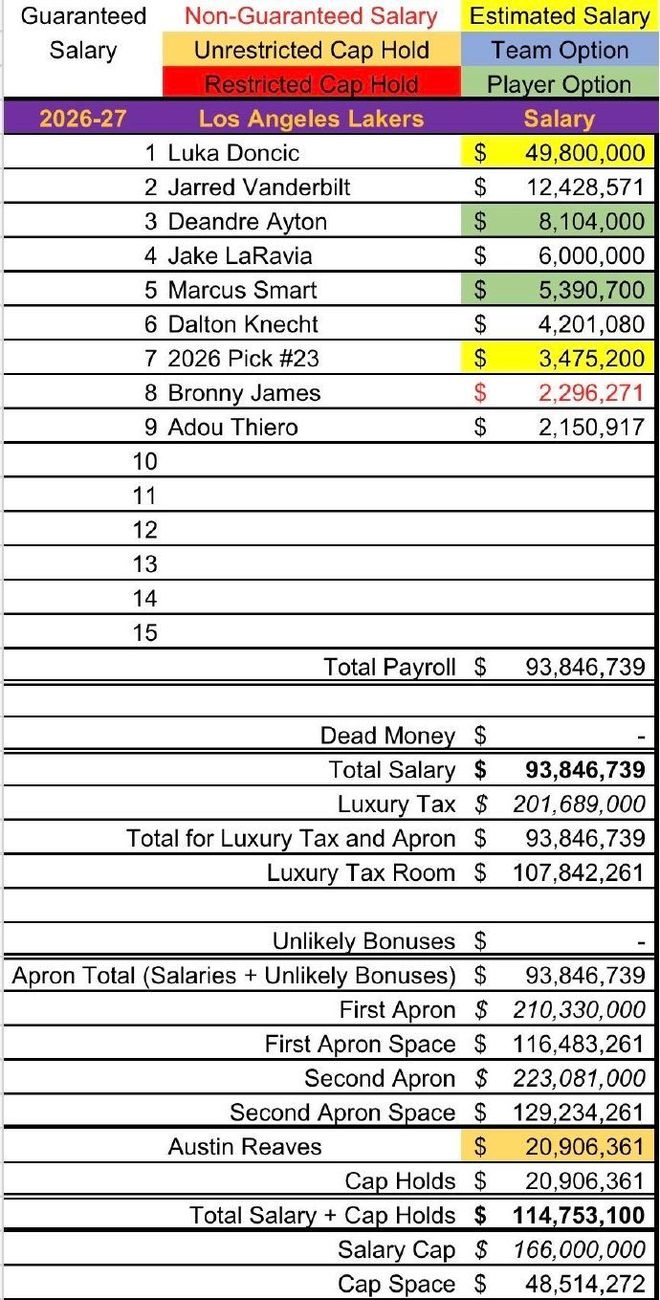 据悉,湖人今夏将拥有约6000万美元的薪资空间,手握3个首轮签(2026年、2031年、2033年),可以尝试交易得到字母哥。