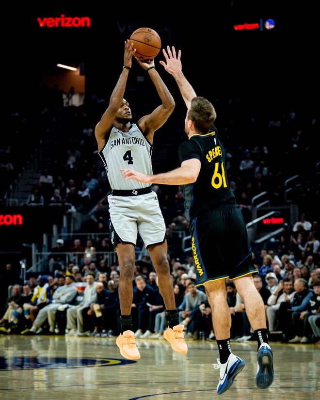 马刺队的福克斯得到27分和8次助攻,文班亚马得到26分和9个篮板,约翰逊得到21分和6个篮板,哈珀得到14分、4个篮板和8次助攻,巴恩斯得到10分和5个篮板。勇士队的穆迪得到17分和4个篮板,梅尔顿得到17分和7次助攻,格林得到17分、12个篮板和8次助攻,波杰姆斯基得到16分和5个篮板,普斯特得到12分,佩顿得到10分和5次助攻。