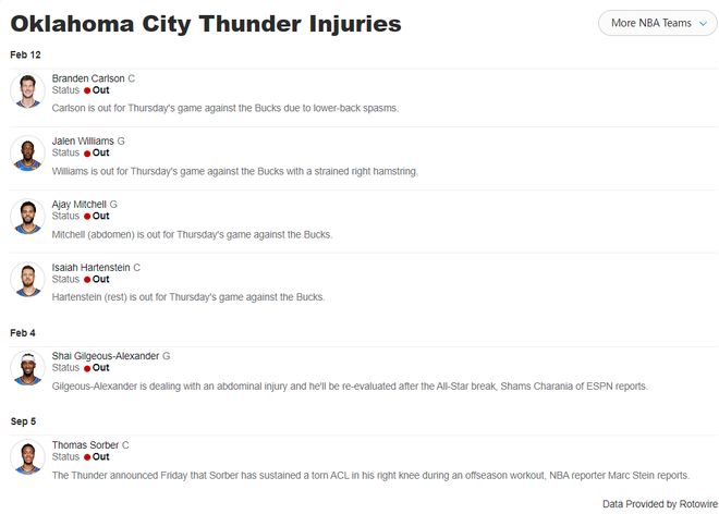 亚历山大自2月5日起就因为腹部拉伤缺席,他的伤势也是在全明星周末后才复查,他肯定让自己这个赛季至少出席65场比赛,因为他还想连庄MVP,但也有再度受伤的风险,这是一个巨大的隐患。