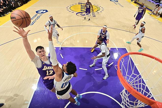 本场比赛中,湖人的先发锋线新星杰克-拉拉维亚(Jake LaRavia)的表现还算是中规中矩。拉拉维亚全场出场25分40秒,投篮6中4,三分线外1中0,罚球3中3,得到了11分3篮板2助攻的数据,还有2次失误和2次犯规,正负值为+21。拉拉维亚在进攻端还是展现出了一定的篮下得分能力和终结能力,他还是能够在对手内线制造一些威胁的。拉拉维亚也具备一定的传球能力和策应能力,而且他在防守端也有着很高的积极性和活力,也能够起到很好的效果。拉拉维亚在本场比赛中算是很好地起到了辅助的效果,在攻防两端都起到了一定的作用,并且为球队的胜利做出了一定的贡献。当然了,他的个人能力也是比较一般的,他也没有办法承担起更多的任务。