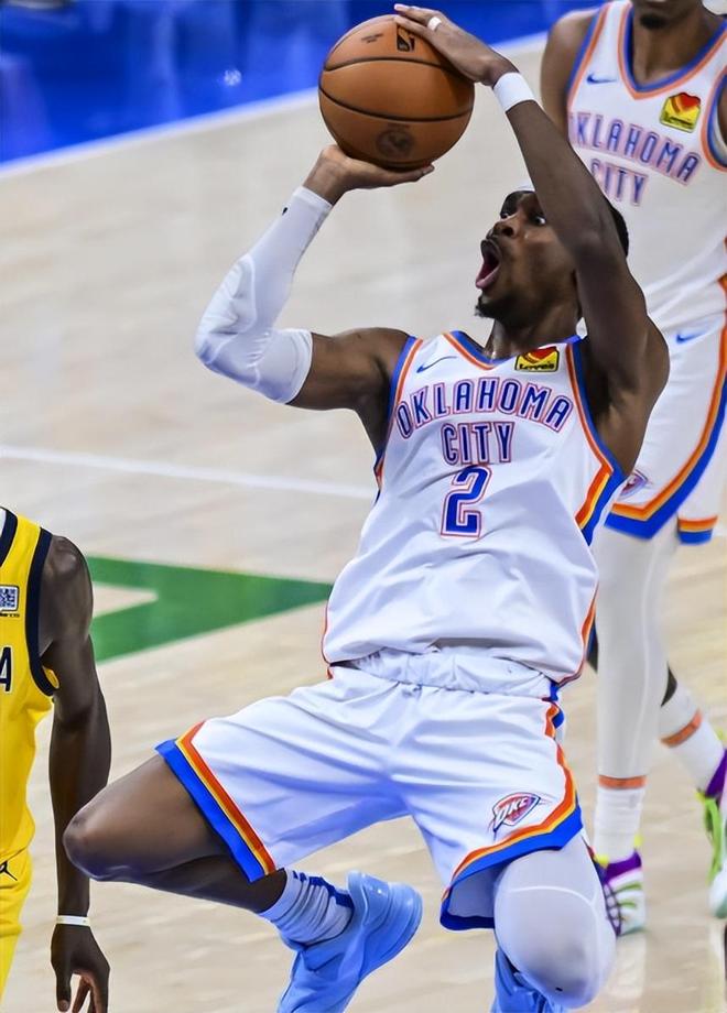疯狂战绩的背后,是断崖式领先的攻防效率。数据显示,当时雷霆的进攻效率高达120.0,净效率达到了史诗级的+15.9 (历史第一)。而在防守端,他们的防守效率(DEFF)高达105,将排名第二的活塞(110.9)远远甩在身后,同样是联盟独一档的存在 。那时候的亚历山大,常常三节打卡,彼时的俄城,满眼都是‘金州勇士’的影子。