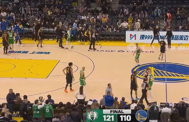 说回比赛,没有库里&巴特勒的勇士,面对东部第二的凯尔特人自然没有还手之力,最终主场110-121落败。