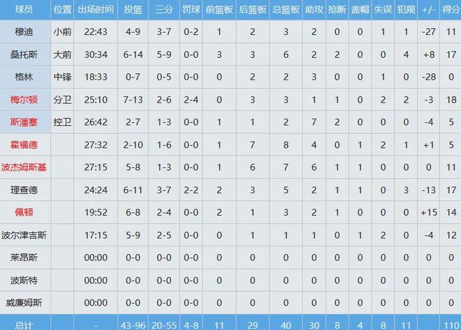 追梦格林的数据相当疯狂,运动战七投全丢且没有罚球,得分挂零只收获2板3助,正负值-28全场最低。