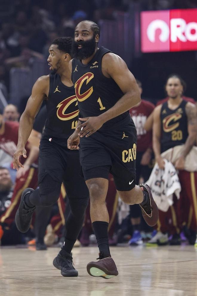 骑士:哈登3记三分16分5篮板9助攻3抢断,米切尔17分5助攻,韦德11分,莫布利10分9篮板,阿伦15分10篮板2盖帽,泰森11分,施罗德12分。