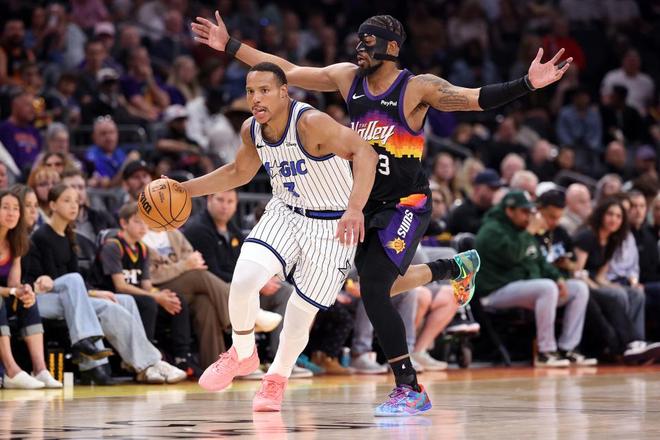 进入第四节比赛,太阳凭借团队攻势逐步压制魔术,太阳逐步扩大91-80领先11分优势。魔术连得7分追分,太阳随后维持96-90领先优势,班凯罗上篮与助攻布莱克暴扣,太阳接连打铁,布莱克抢断反击一条龙暴扣追平。魔术战术犯规拖延时间未到罚球次数,吉莱斯皮压哨绝杀三分不中,双方常规时间维持96-96。