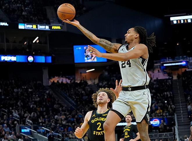 本场比赛中,马刺的先发侧翼大将德文-瓦塞尔(Devin Vassell)总算是打出了一场出色的表现。瓦塞尔全场出场36分19秒,投篮14中10,三分线外11中7,罚球2中1,得到了全场最高分28分外加2篮板4助攻1盖帽的数据,还有1次失误和2次犯规,正负值为+11。瓦塞尔在进攻端终于发挥出了自己在外线投篮方面的能力,命中了大量的三分,展现出了应有的水准。除此之外,瓦塞尔也是能够在传球和组织方面起到一定的作用,他在进攻端的功能非常全面。瓦塞尔在防守端的表现也是值得肯定的,同样是起到了一定的作用的。瓦塞尔在本场比赛中也算是将自己的特点完全发挥了出来,为球队的胜利提供了巨大的帮助。
