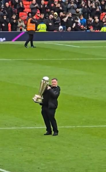 飞镖世锦赛冠军利特勒现场观战,并在中场休息时,当着曼联球迷的面高举自己的世锦赛奖杯展示。