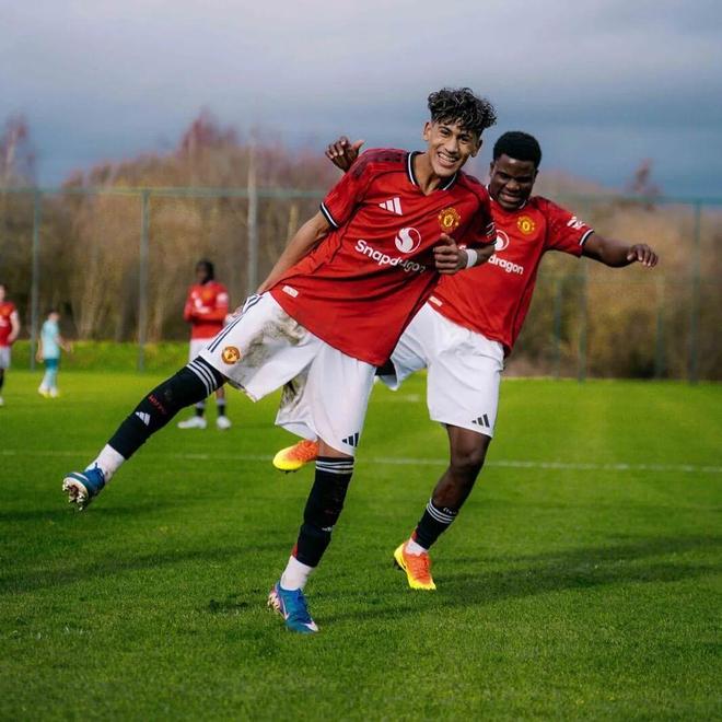 在曼联青年队,小鲁尼与15岁的加布里埃尔(JJ Gabriel)是搭档,后者更受球迷关注,被誉为「小梅西」。加布里埃尔本赛季已经为曼联青年队打入16球,周六红魔U18以3-1的比分战胜了狼队,加布里埃尔梅开二度,其中24分钟的进球尤其精彩。