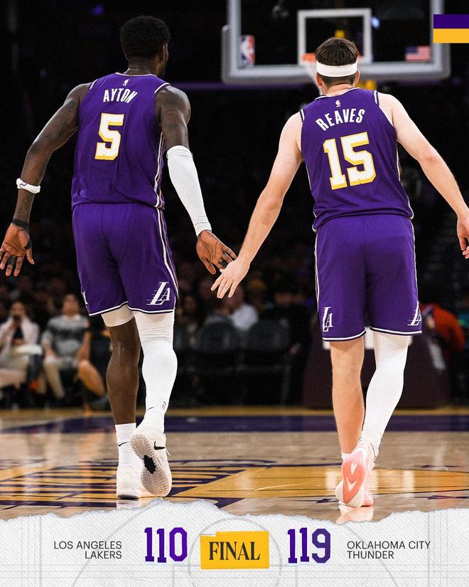 湖人110-119不敌7人上双雷霆,詹姆斯22+6+10,杰伦威23分