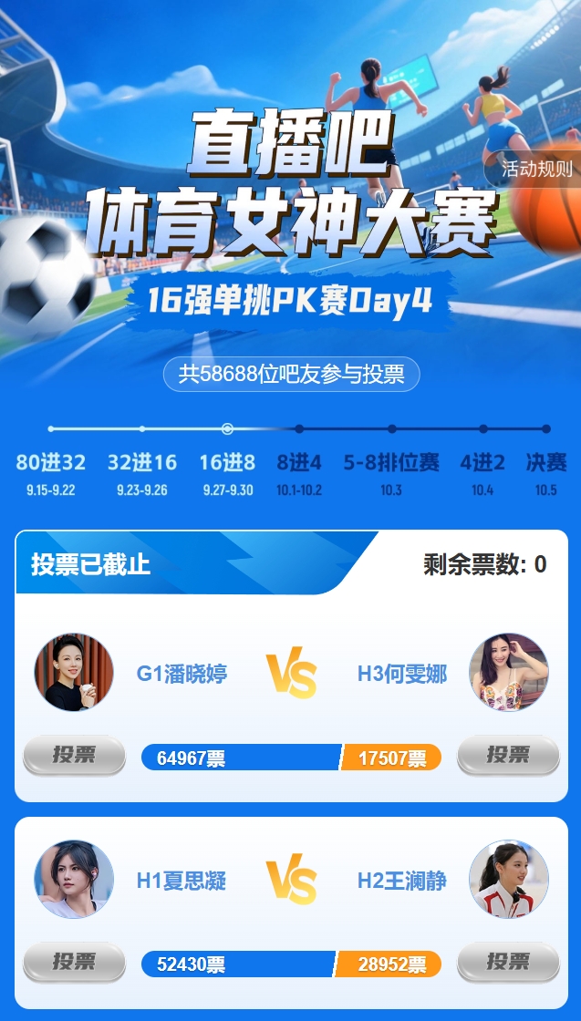 2025年『体育女神大赛』昨日结束了16强单挑PK赛最后一天的争夺,Day4具体结果如下: