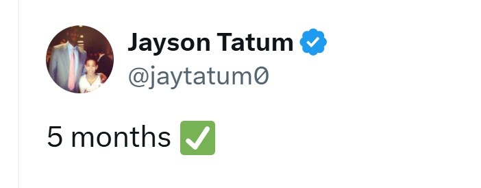 2025-10-01 16:35:52早日回归!塔图姆推特康复打卡:5个月了✅