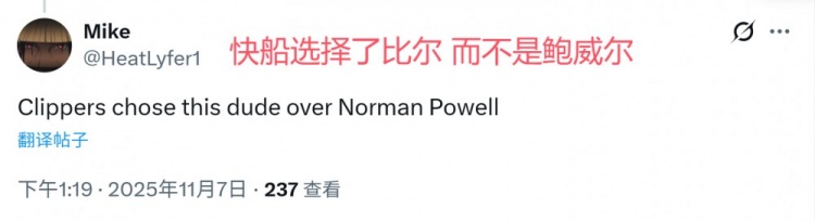 美网友:比尔赶紧退役吧 快船竟选择了他而非鲍威尔 想鲍科比了